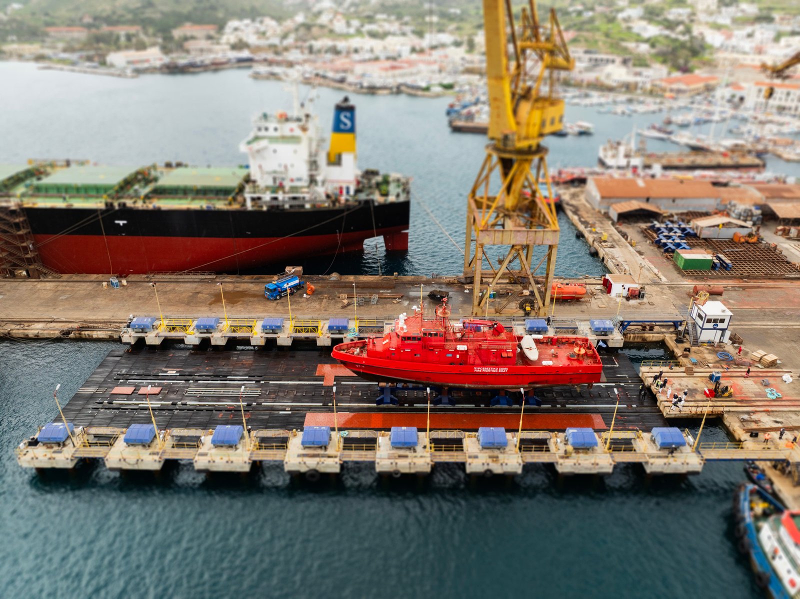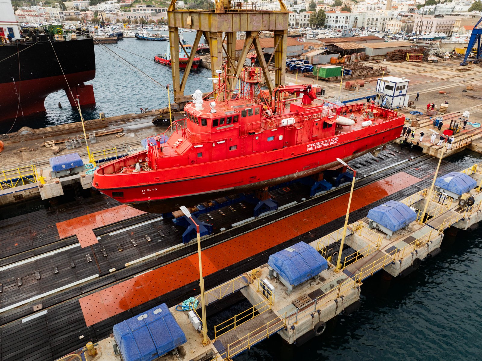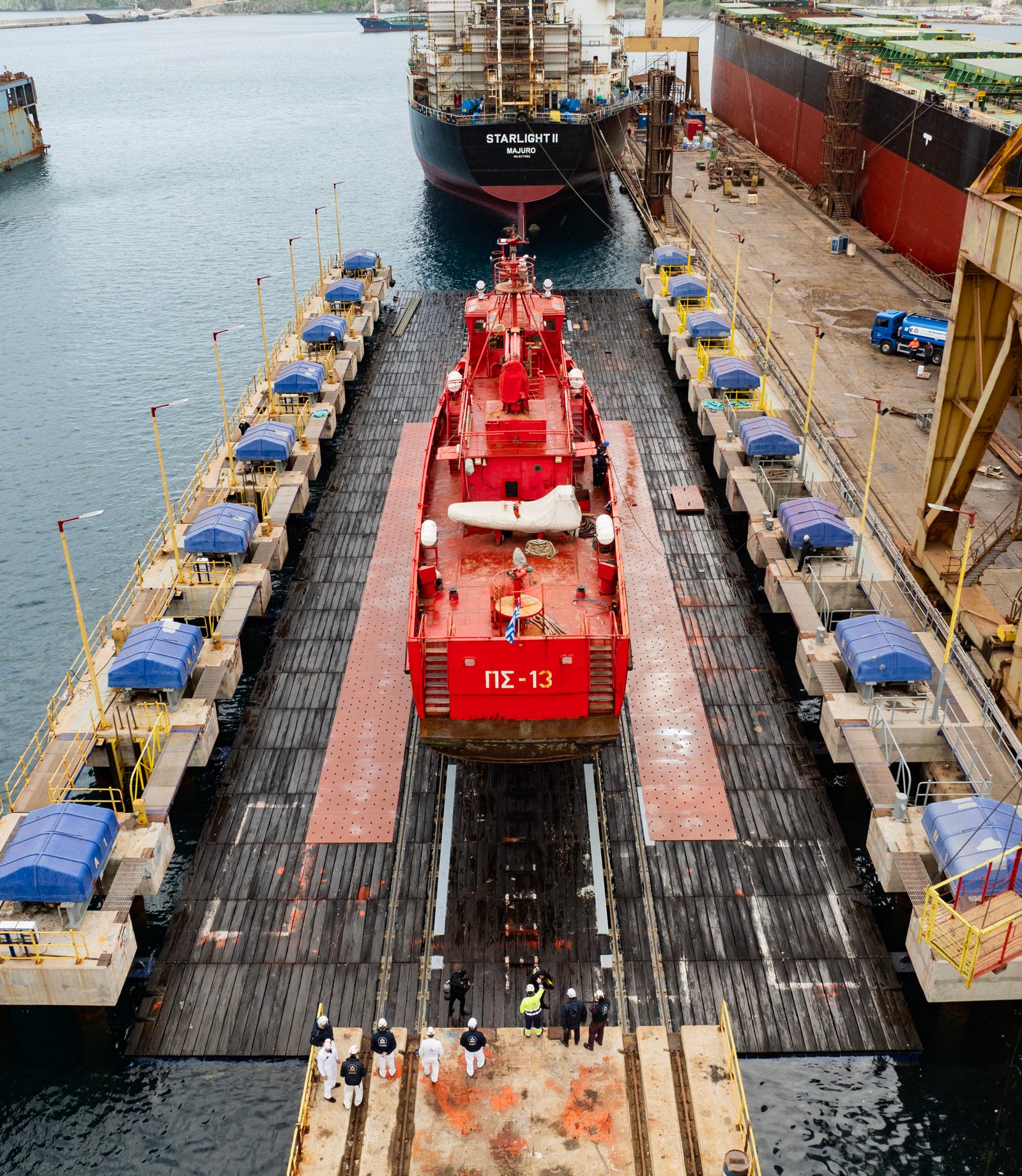 Επιπλέον μπορούν να εξυπηρετηθούν και ανάγκες καθέλκυσης νεότευκτων πλοίων της κατηγορίας αυτής.