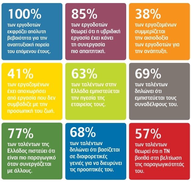 • Το 63% των ταλέντων στην Ελλάδα εμπιστεύεται την ηγεσία της εταιρείας τους (παγκοσμίως: 72%).