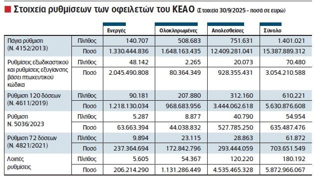 Όλα αυτά, ενώ το συνολικό χρέος που έχει συσσωρευτεί στο ΚΕΑΟ, στα τέλη του γ’ τριμήνου του 2025, εκτοξεύθηκε στα 50,68 δισ. ευρώ.