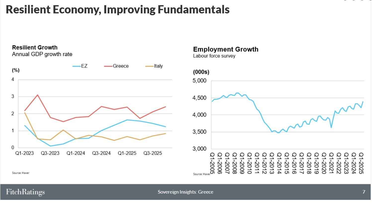 Η ελληνική οικονομία εμφανίζει ισχυρή δημοσιονομική επίδοση, ανθεκτική ανάπτυξη και σημαντική πρόοδο στην αγορά εργασίας, ωστόσο εξακολουθεί να αντιμετωπίζει διαρθρωτικές προκλήσεις και νέους εξωτερικούς κινδύνους. Στο περιβάλλον αυτό, ο πόλεμος στη Μέση Ανατολή δημιουργεί ένα ακόμη ενεργειακό σοκ για την παγκόσμια οικονομία, με πιθανές επιπτώσεις στον πληθωρισμό και τις επιχειρήσεις, σύμφωνα με όσα επισημάνθηκαν σε webinar του Fitch Ratings για την Ελλάδα, που παρακολούθησε το -.