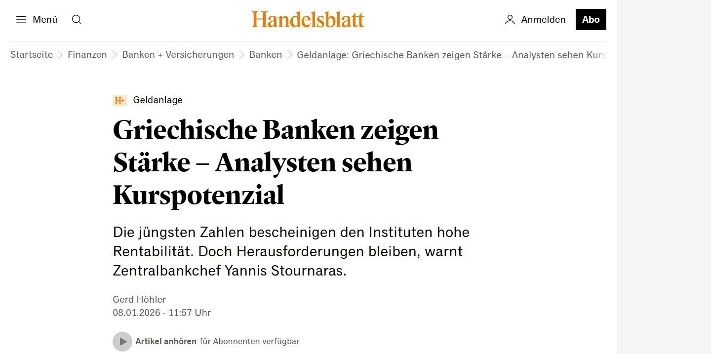 Σήμερα, εκείνη η κρίση μοιάζει σχεδόν ξεχασμένη, αναφέρει το γερμανικό μέσο. Τα κρατικά κεφάλαια στήριξης έχουν αποπληρωθεί πλήρως. «Τα αποτελέσματα του πανευρωπαϊκού stress test του 2025 επιβεβαιώνουν την ανθεκτικότητα των ελληνικών τραπεζών», δήλωσε στην Handelsblatt ο διοικητής της Τράπεζας της Ελλάδος Γιάννης Στουρνάρας.